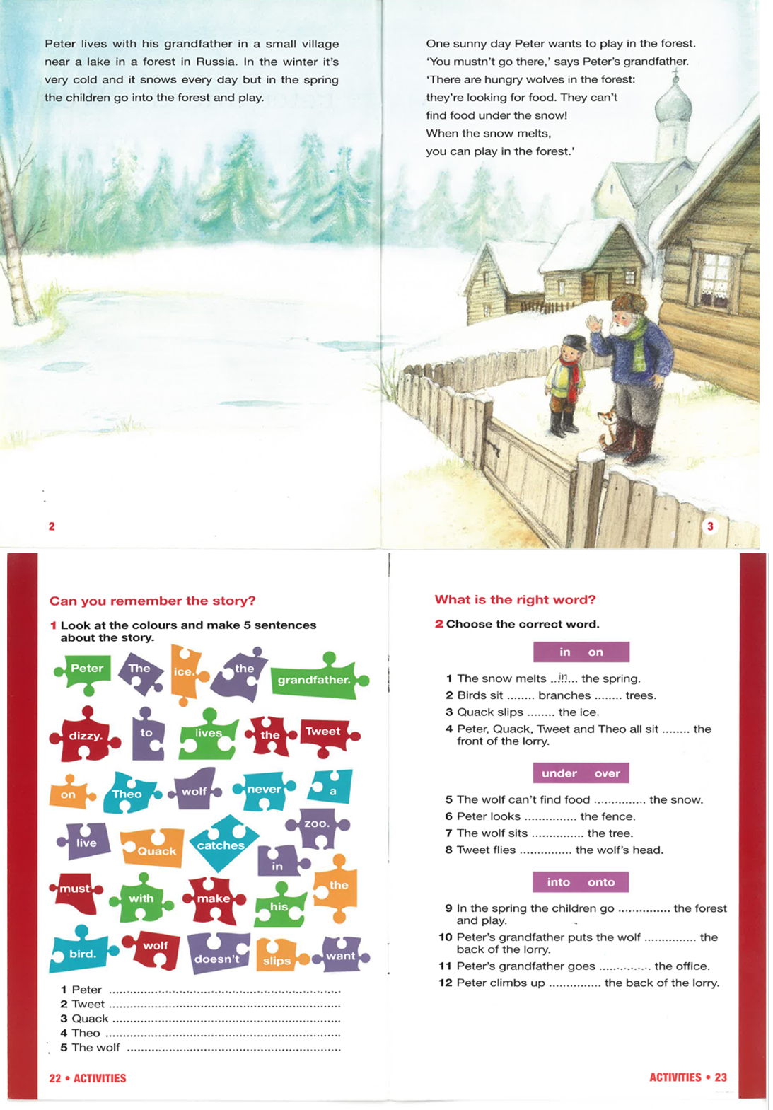 ピーターのおじいさんは、森には行かないようにと孫に忠告します。今はまだ冬で、オオカミがお腹を空かせているからです! もちろん、ピーターは聞く耳持ちません…このリーダーでは、有名なロシアのお話とは結末が異なります。あっと驚く大団円に、みんなが笑顔になるでしょう!