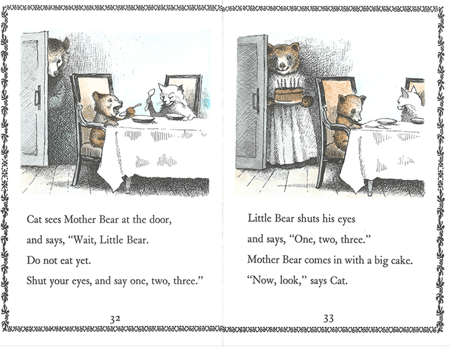Little Bear's Wish:おやすみ前に願い事を母くまに語るくまくん。雲に乗ったりはできないけれど、母くまに優しくしてもらってうれしそうです。